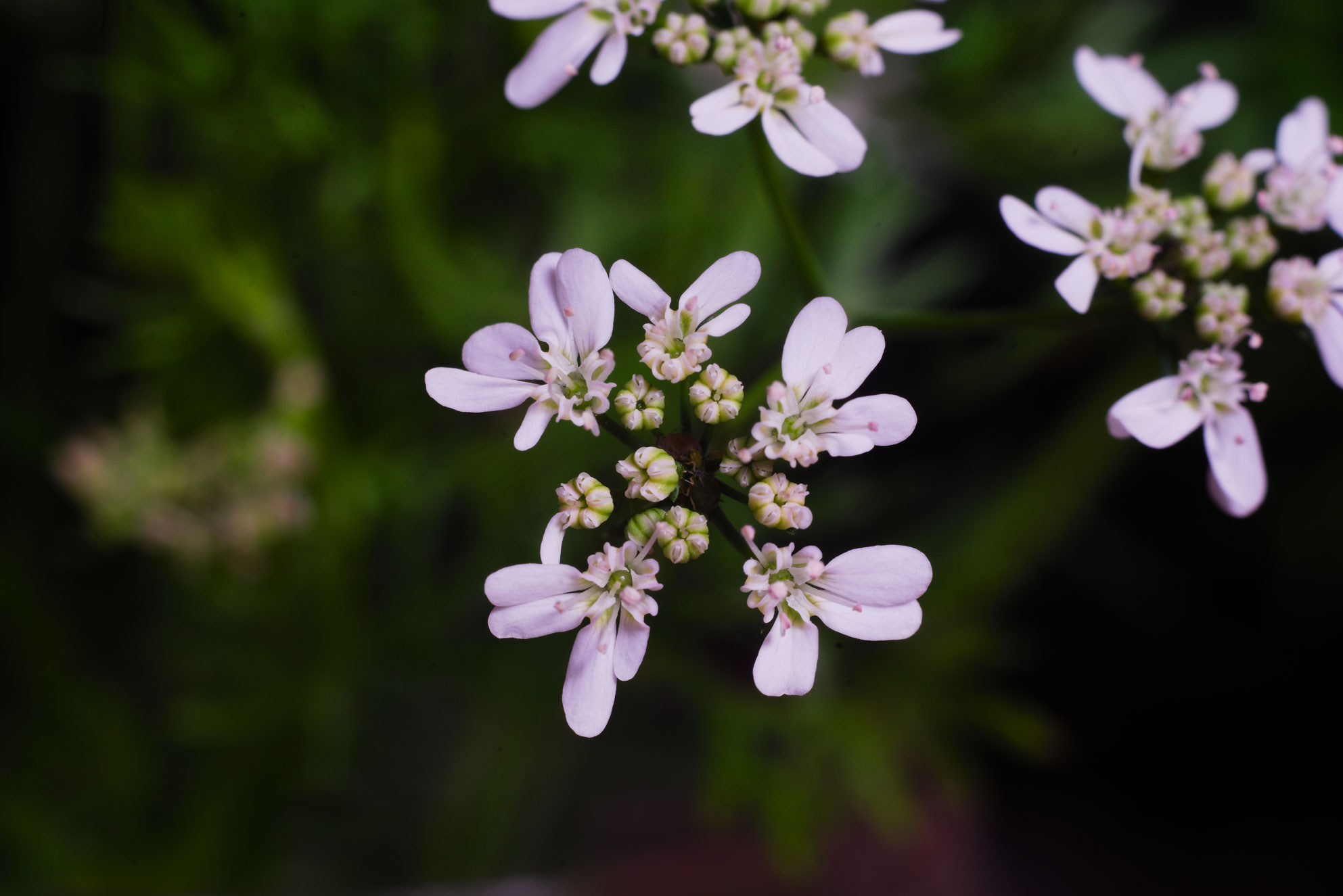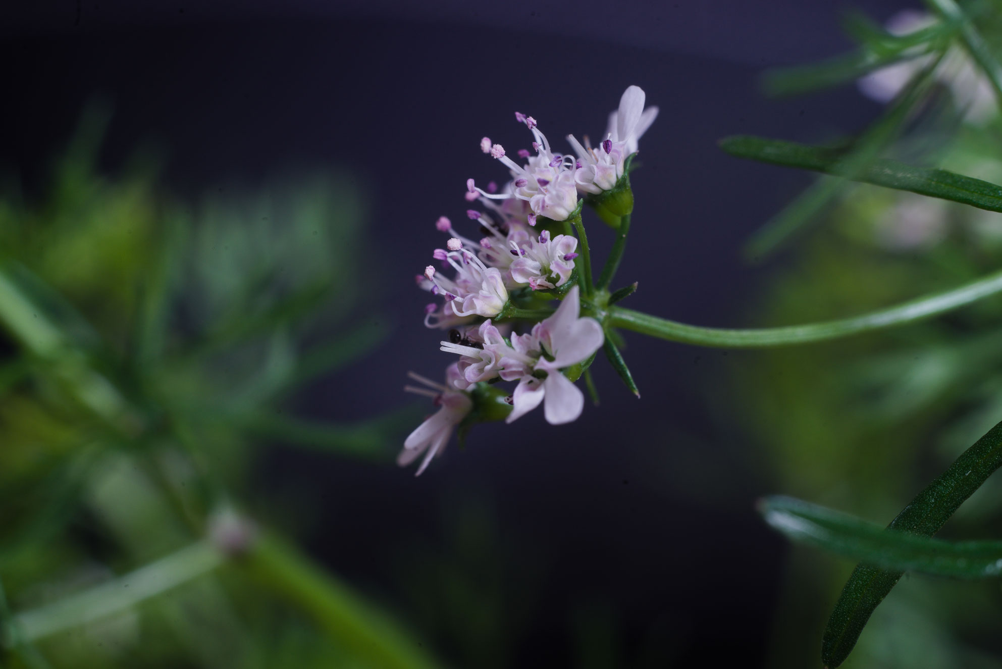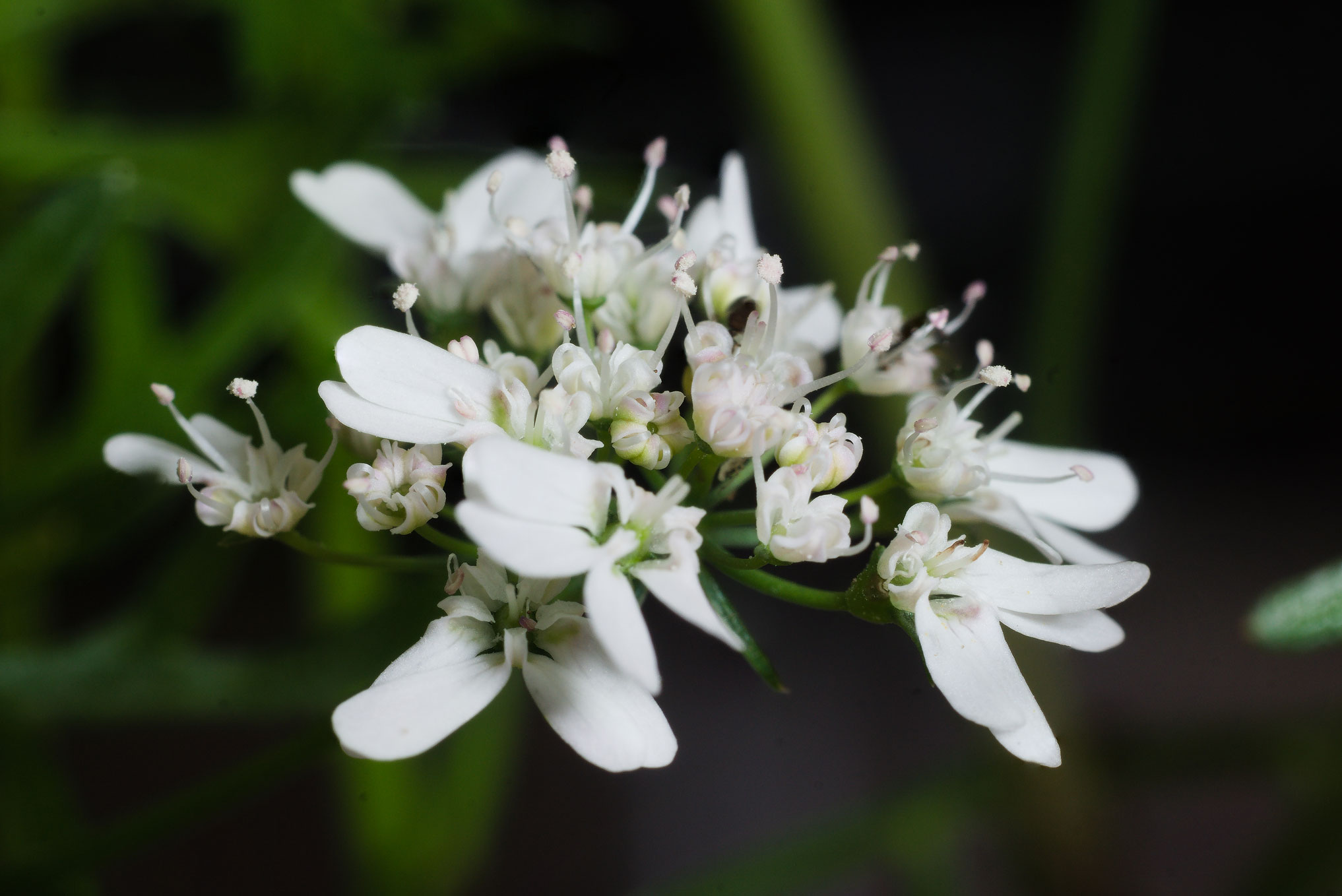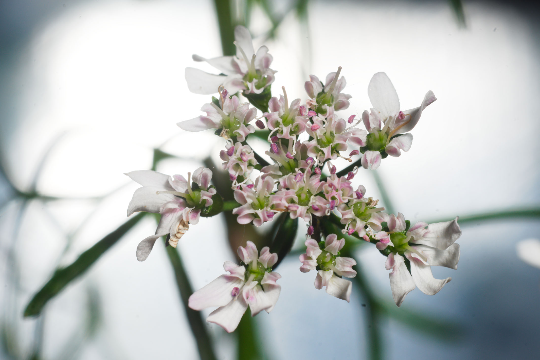 Coriander is an annual herb cultivated for its leaves and seeds, which serve diverse culinary and medicinal purposes. It grows to a height of 1 to 2 feet (0.3 to 0.6 meters), forming slender, green stems topped with delicate, lacy leaves. The plant’s lower leaves are broad and lobed, while the upper leaves are finely dissected. Coriander blooms with small, white to pale pink flowers arranged in flat-topped clusters called umbels, followed by round, aromatic seeds.