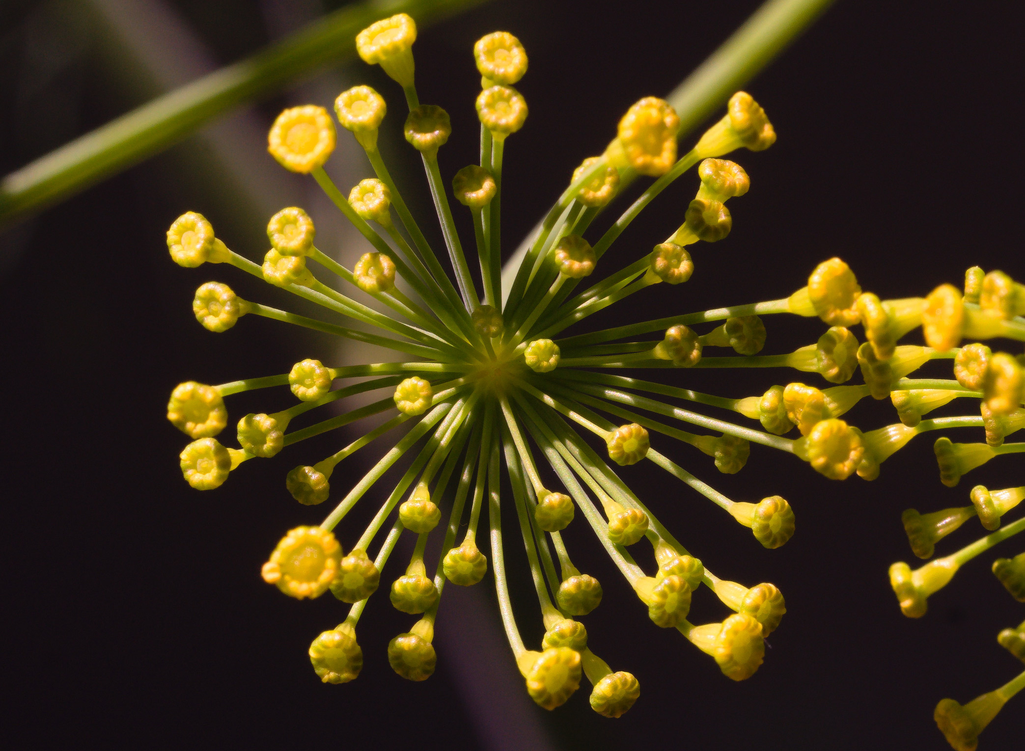 | Identification | Height: 3 to 5 feet (0.9 to 1.5 meters) Leaves: Finely divided, thread-like, feathery, bright green Stem: Slender, hollow Flowers: Small, yellow, in umbels Roots: Fibrous and shallow Growth Habit: Upright and bushy |